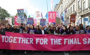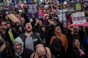 স্থানীয় সময় শনিবার বিকালে পার্ক লেন থেকে পার্লামেন্ট স্কয়ার অভিমুখে বিক্ষোভ প্রদর্শন করেন আন্দোলনকারীরা। একইদিন যুক্তরাজ্যের কট্টর ব্রেক্সিটপন্থী প্রধানমন্ত্রী বরিস জনসনের খসড়া ব্রেক্সিট চুক্তি পেছানোর পক্ষে রায় দেয় দেশটির পার্লামেন্ট। এমপিদের এমন সিদ্ধান্তকে স্বাগত জানান বিক্ষোভকারীরা। পার্লামেন্টের বাইরে তারা স্লোগান তোলেন, আমাদের কথা শুনতে হবে, জনগণের আওয়াজ শুনতে হবে।