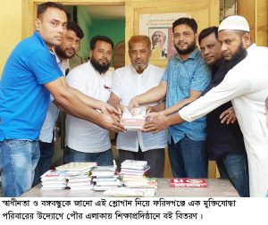 ফরিদগঞ্জ (চাঁদপুর) প্রতিনিধি: জাতির পিতা বঙ্গবন্ধু শেখ মুজিবুর রহমানের শত বছর উৎসব এবং স্বাধীনতা ও বঙ্গবন্ধুকে জানো এই শ্লোগানকে সামনে রেখে ফরিদগঞ্জ পৌর এলাকার এক মুকিযোদ্ধা পরিবারের উদ্যোগে বিভিন্ন শিক্ষাপ্রতিষ্ঠিানের স্বাধীনতার ইতিহাস ও বঙ্গবন্ধুর জীবনি ভিত্তি¡ক বই বিতরণ কর্মসূচী হাতে নিয়েছে। বৃহস্পতিবার পৌর এলাকার বড়ালী সরকারী প্রাথমিক বিদ্যালয়ের শিক্ষার্থী ও শিক্ষকদের মাঝে বই বিতরণের মধ্যে দিয়ে এই কার্যক্রম অনুষ্ঠানিক যাত্র শুরু হয়।