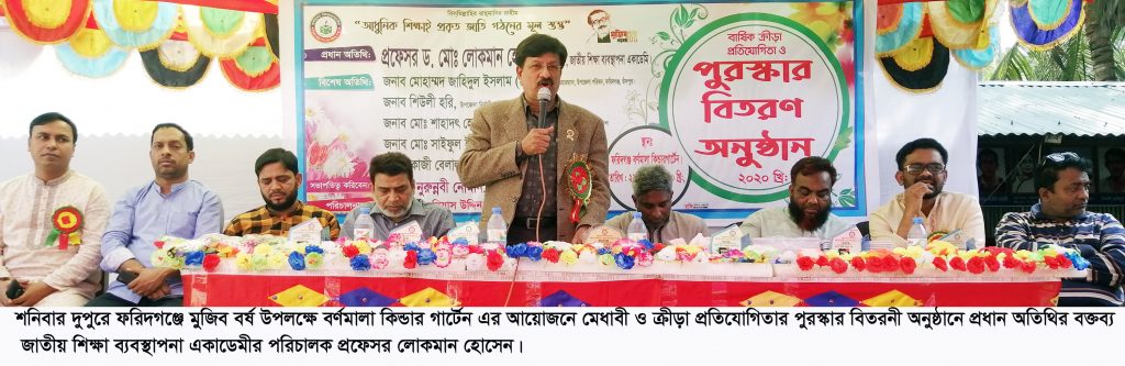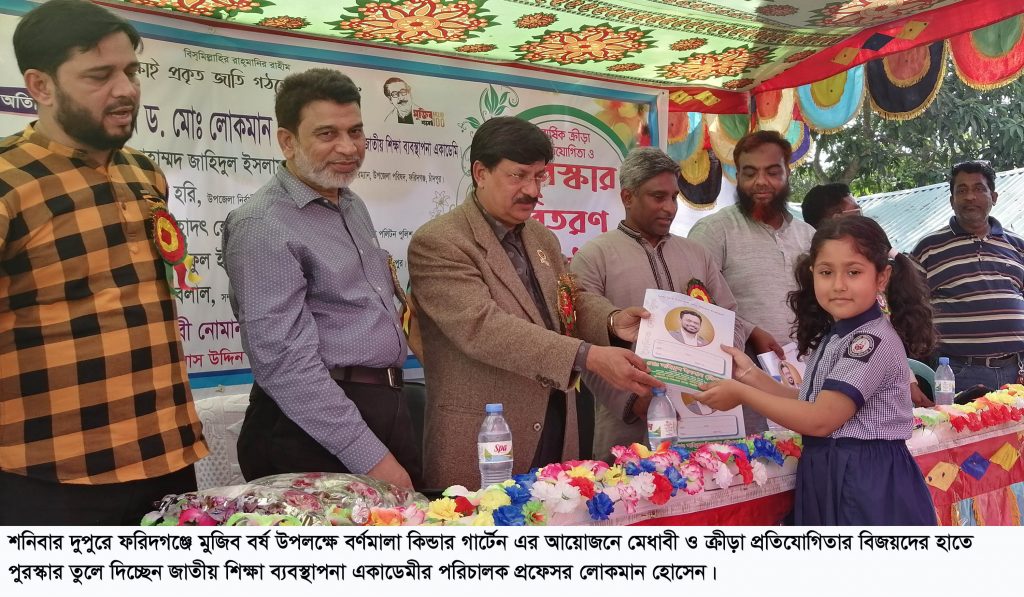 ফরিদগঞ্জ ব্যুারো: ফরিদগঞ্জ পৌর এলাকার বর্ণমালা কিন্ডার গার্টেনের বার্ষিক ক্রীড়া প্রতিযোগিতা ও পুরস্কার বিতরণ অনুষ্ঠানে জাতীয় শিক্ষা ব্যবস্থাপনা একাডেমীর পরিচালক প্রফেসর ড. মোঃ লোকমান হোসেন তার বক্তব্যে বলেছেন, বর্তমান তথ্য প্রযুক্তির যুগের সাথে শিক্ষা ব্যবস্থান তালমিলিয়ে অসম্ভব গতিতে এগিয়ে যাচ্ছে। এই গতির সাথে কোন প্রতিষ্ঠান, শিক্ষক বা ছাত্র-ছাত্রী তালমিলিয়ে এগিয়ে যেতে না পারলে সেই প্রতিষ্ঠান বা ব্যক্তি সমৃদ্ধির পথে এগিয়ে যাওয়া সম্ভব্য হবে না। এখন থেকে শিশুদের তথ্য প্রযুক্তির জ্ঞান ধারনায় সম্পৃক্ত করতে হবে। যার জন্য বর্তমান শিক্ষা বান্ধব সরকারের প্রধানমন্ত্রী জননেত্রী শেখ হাসিনা আমাদের দেশের শিক্ষার্থীদের অধুনিক ও প্রযুক্তির শিক্ষায় শিক্ষিত করতে নানামূখী প্রদক্ষেপ গ্রহণ করেছেন।