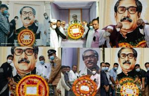 প্রতিকৃতিতে পৌর মেয়র মাহফুজুল হক, পৌর কর্মকর্তা-কর্মচারী ও পৌর আ’লীগ নেতৃবৃন্দ ফুল দিয়ে গভীর সম্মান জানান। পরে পৌর কার্যালয়ে আলোচনা ও দোয়ার আয়োজন করেন মেয়র মাহফুজুল হক।