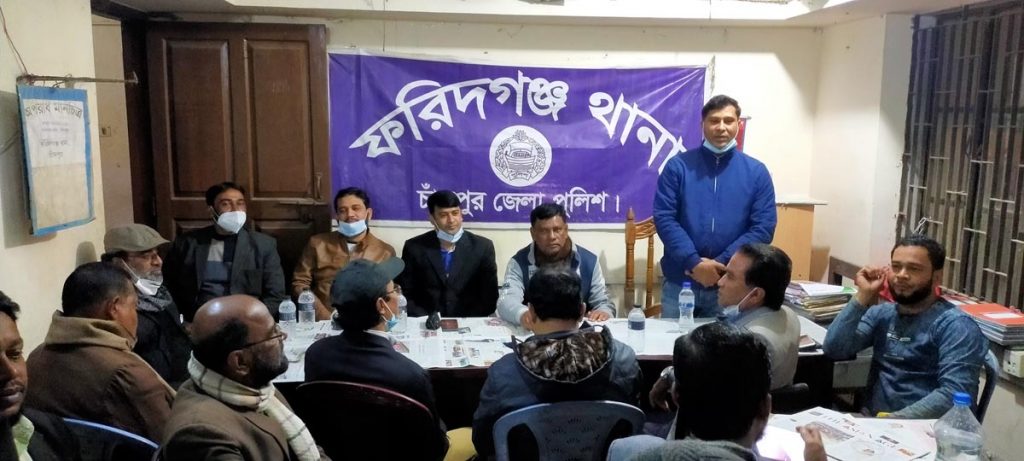 স্টাফ রিপোর্টার: আগামী অক্টোবর মাসে পূর্ণ হচ্ছে ফরিদগঞ্জ থানার শত বছর। শত বছরের ফরিদগঞ্জ থানাকে কালের স্বাক্ষী হিসেবে স্মরণ করে রাখার জন্য শত বছর পূর্তি অনুষ্ঠান ব্যাপক জাঁকজমক ভাবে আয়োজনের জন্য থানার অফিসার ইনচার্জ মোঃ সহিদ হোসেন, ফরিদগঞ্জ প্রেসক্লাবের নেতৃবৃন্দদের সাথে বৃহস্পতিবার এক মতবিনিময় সভায় মিলিত হন।