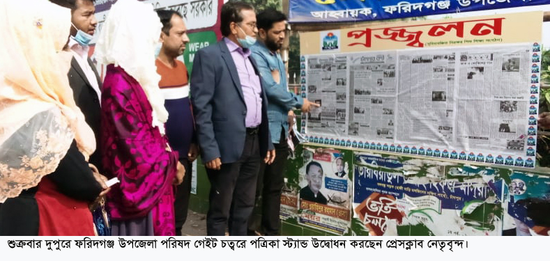 শুক্রবার দুপুরে পত্রিকার স্ট্যান্ডের উদ্বোধন কালে উপস্থিত ছিলেন, ফরিদগঞ্জ প্রেসক্লাবের সাবেক সভাপতি মামুনুর রশিদ পাঠান, প্রেসক্লাবের সাবেক সভাপতি ও সাপ্তাহিক আলোকিত ফরিদগঞ্জ’র সম্পাদক ও প্রকাশক নুরুন্নবী নোমান, প্রেসক্লাব’র সাবেক সাধারণ সম্পাদক সাপ্তাহিক ফরিদগঞ্জ কন্ঠ’র ভারপাপ্ত সম্পাদক প্রবীর চক্রবর্তী ও প্রেসক্লাবের প্রচার সম্পাদক আনিছুর রহমান সুজন, প্রজ্জ্বলন প্রতিষ্ঠাতা খাদিজা তাসনীম, আহ্বায়ক আহ্বায়ক তৌহিদুর ইসলাম রণি,সদস্য সচিব আজহারুল ইসলাম সাকিব ও সদস্য শামীম হাসান সজিব সহ প্রজ্জলনের সদস্যরা।