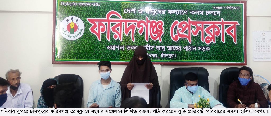 স্টাফ রিপোর্টার: চুরির ঘটনাকে কেন্দ্র করে এক বুদ্ধি প্রতিবন্ধী কিশোরের পরিবারের উপর প্রভাবশালী মহলের মদদে হামলা , মেরে ফেলার হুমকি ও নির্যাতন থেকে রক্ষা এবং নিরাপত্তার দাবী করে সংবাদ সম্মেলন করেছে এক বুদ্ধিপ্রতিবন্ধী কিশোরের ভুক্তভোগী পরিবার। গতকাল শনিবার দুপুরে ফরিদগঞ্জ প্রেসক্লাবে সংবাদ সম্মেলন করে বুদ্ধিপ্রতিবন্ধী কিশোরের মা হালিমা বেগম। বয়স ১৬ হলেও বুদ্ধিপ্রতিবন্ধী কিশোর বর্তমানে চুরির মামলায় জেল হাজতে রয়েছে।
