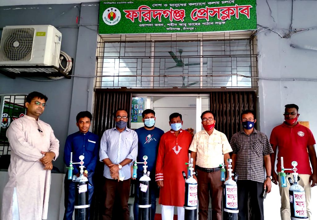 মানুষের এ দূরাবস্থায় করোনা রোগীদের জরুরি অক্সিজেন সেবা নিশ্চিত করতে ফরিদগঞ্জ প্রেসক্লাবে ৪টি অক্সিজেন সিলিন্ডার প্রদান করেছেন প্রেসক্লাবের সাবেক সভাপতি সমাজসেবক মামুনুর রশিদ পাঠান।