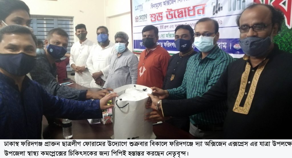 : করোনা মহামারিতে ঢাকাস্থ ফরিদগঞ্জ প্রাক্তন ছাত্রলীগ ফোরামের উদ্যোগে উর্মি গ্রুপ ও সংযোগ এর সহযোগিতায় ফরিদগঞ্জে চিকিৎসকের পরামর্শ অনুযায়ী বিনামূল্যে অক্সিজেন সেবা “দ্যা অক্সিজেন এক্সপ্রেস’ যাত্রা শুরু করে।