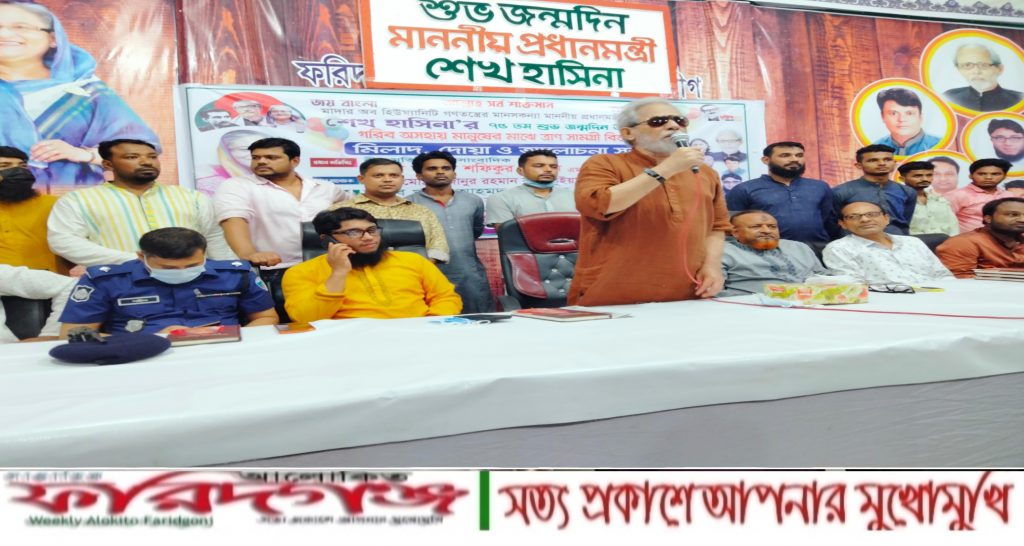 মঙ্গলবার সফল প্রধানমন্ত্রী জননেত্রী শেখ হাসিনার ৭৫ তম জম্ম বাষির্কী উপলক্ষে যুবলীগের কার্যায়য়ে ফরিদগঞ্জ উপজেলা যুব আওয়ামীলীগ আয়োজিত আলোচনা সভা, দোয়ানুষ্ঠানে ও অসহায়দের মাঝে খাদ্য সামগ্রী বিতরনের পরে আলোচনা সভায় তিনি তার বক্তব্যে এই কথা বলেন। উপজেলা যুবলীগের আহ্বায়ক আবু সুফিয়ানের সভাপতিত্বে এই সময় আলোচনা সভায় অন্যান্যদের মধ্যে বক্তব্য রাখেন, জেলা যুবলীগের আহ্বায়ক মিজানুর রহমান কালু ভূঁইয়া, জেলা সদস্য অরুপ কর্মকার, উপজেলার যুগ্ম আহ্বায়ক হেলাল উদ্দীন আহম্মেদ, যুগ্ম আহ্বায়ক আল আমিন পাটওয়ারীর পরিচালনায় এই সময় ঢাকা থেকে মুঠোফোনে আওয়ামীলীগ নেতা খাজে আহম্মদ বক্তব্য রাখেন।