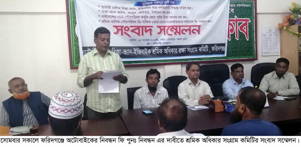 ফরিদগঞ্জে অটোবাইকের নিবন্ধন ফি পুন:নির্ধারণের দাবীতে শ্রমিক সংগঠনের সংবাদ সম্মেলন
