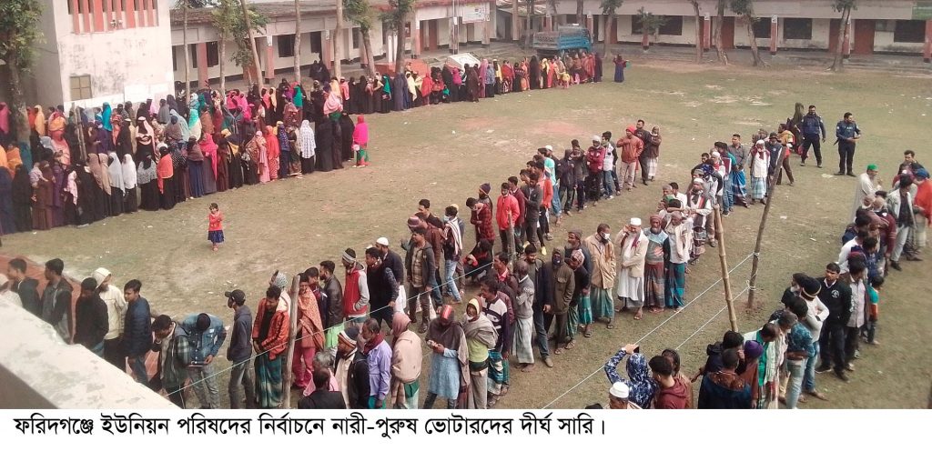 চাঁদপুরের ফরিদগঞ্জে উৎসব মূখর পরিবেশে উপজেলার ১৩ ইউনিয়নের নির্বাচন সম্পন্ন হয়েছে। ৫/৬ টি ইউনিয়নের কয়েকটি কেন্দ্রে বিচ্ছিন্ন ঘটনা ব্যতিত বড় ধরনের সহিংস ছাড়াই ভোট গ্রহণ শেষ হয়েছে। দুটি কেন্দ্রে ব্যালট পেপার ছিনিয়ে নিয়েছে সন্ত্রাসীরা।