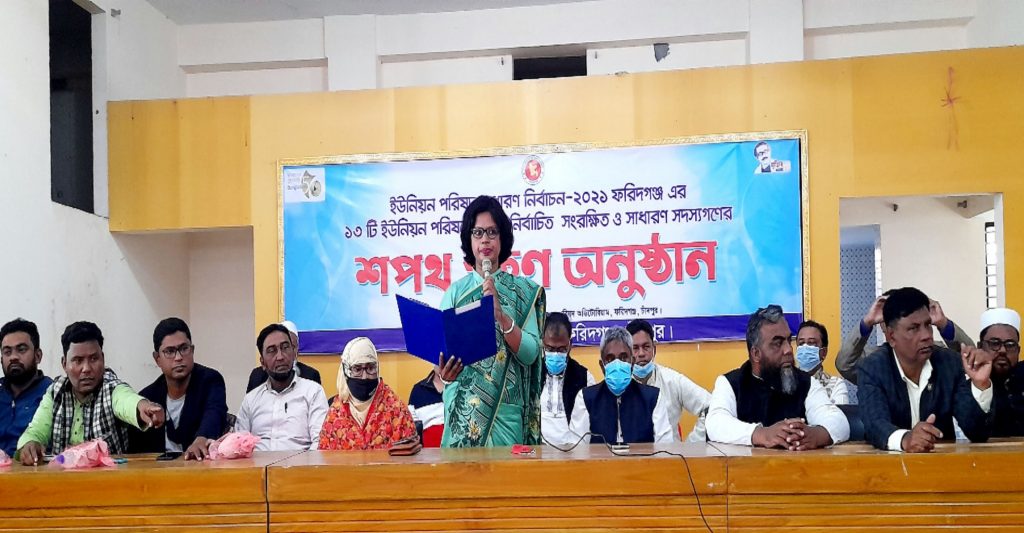 চাঁদপুর ফরিদগঞ্জ উপজেলার গত ৫ জানুয়ারি অনুষ্ঠিত ১৩ ইউনিয়ন পরিষদ নির্বাচনে “নব-নির্বাচিত সদস্যদের” শপথ গ্রহণ অনুষ্ঠিত হয়েছে।