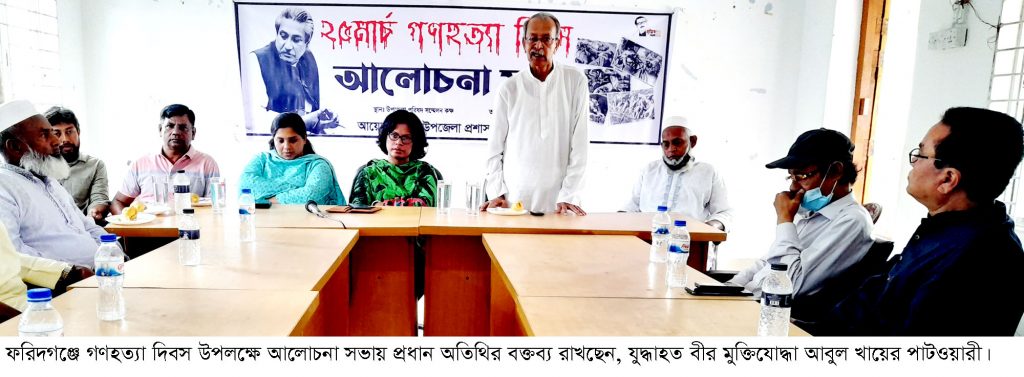 ২৫ মার্চ জাতীয় গণহত্যা দিবসের স্মরণে চাঁদপুরের ফরিদগঞ্জে আলোচনা সভা অনুষ্ঠিত হয়েছে।