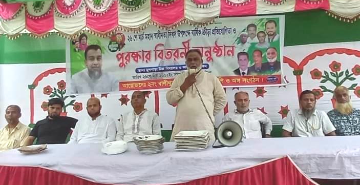 এ সময় প্রধান অতিথি হিসেবে উপস্থিত থেকে পুরস্কার বিতরণ করেন ২ নং বালিথুবা ইউনিয়ন বিএনপি’র সভাপতি ডাক্তার ওমর ফারুক, বিএনপি নেতা মুন্নাফ হসেন, উপজেলা বিএনপি’র মৎস্য বিষয়ক সম্পাদক বাদল ঢালী, ইউনিয়ন বিএনপি’র সিনিয়র সহ-সভাপতি আকতার হোসেন বরকন্দাজ, ইউনিয়ন বিএনপি’র সহ-সভাপতি মোজাম্মেল হোসেন মজুমদার মেম্বার, মোঃ নাজির হোসেন মাস্টার, উপজেলা যুবদলের যুগ্ন আহবায়ক আমির হোসেন খান, ২ নং বালিথুবা ইউনিয়ন যুবদলের সম্ভাব্য সভাপতি প্রার্থী মোঃ নাজমুল কবির খান, সাধারণ সম্পাদক পদপ্রার্থী আল-আমিন ভূইয়া, বিএনপি নেতা ইমরান হোসেন মেম্বার, ইউনিয়ন ছাত্রদলের সাধারণ সম্পাদক ফয়সাল, ছাত্রদল নেতা সাইফুল ইসলাম, মো: করিম সহ অত্র ইউনিয়ন বিএনপি ও অঙ্গসংগঠনের বিভিন্ন পর্যায়ের নেতাকর্মী, সমর্থক ও এলাকাবাসী। অনুষ্ঠানটি পরিচালনা করেন সাজ্জাদ হোসেন মজুমদার। অনুষ্ঠানটির সার্বিক দিক দেখাশুনা ও পৃষ্ঠপোষকতায় ছিলেন ২ নং বালিথুবা ইউনিয়নের সাবেক জনপ্রিয় চেয়ারম্যান রুহুল আমিন মজুমদারের বড় ছেলে এবং ইউনিয়ন বিএনপি’র আগামীর সম্ভাবনাময় কান্ডারী ও আগামী ইউনিয়ন পরিষদ নির্বাচনে সম্ভাব্য চেয়ারম্যান প্রার্থী মোঃ ইকবাল হোসেন টিটু মজুমদার।