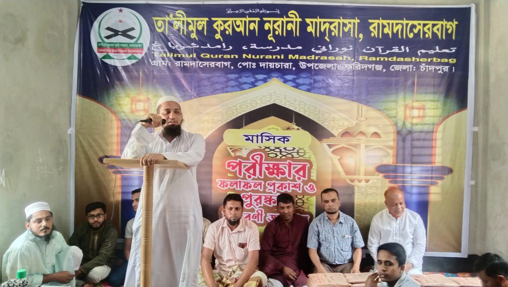 শনিবার (০২ এপ্রিল) সকাল ১১ ঘটিকায় মাদ্রাসার মিলনায়তন কক্ষে পরিচালনা কমিটির সদস্য মো: ইয়াছিন খানের সঞ্চালনায় ও শায়খুল হাদীস হযরত মাও. মুফতি সাইফুল ইসলাম এর সভাপতিত্বে প্রধান অতিথি হিসেবে উপস্থিত ছিলেন, চাঁদপুর সদর উপজেলা প্রাথমিক সহকারি শিক্ষা অফিসার মো: মজিবুর রহমান খান, বিশেষ অতিথি হিসেবে উপস্থিত ছিলেন হাজী মো: আবু জাফর খান, প্রবাসী মো: আরিফ খান, মোঃ হারুন খান।